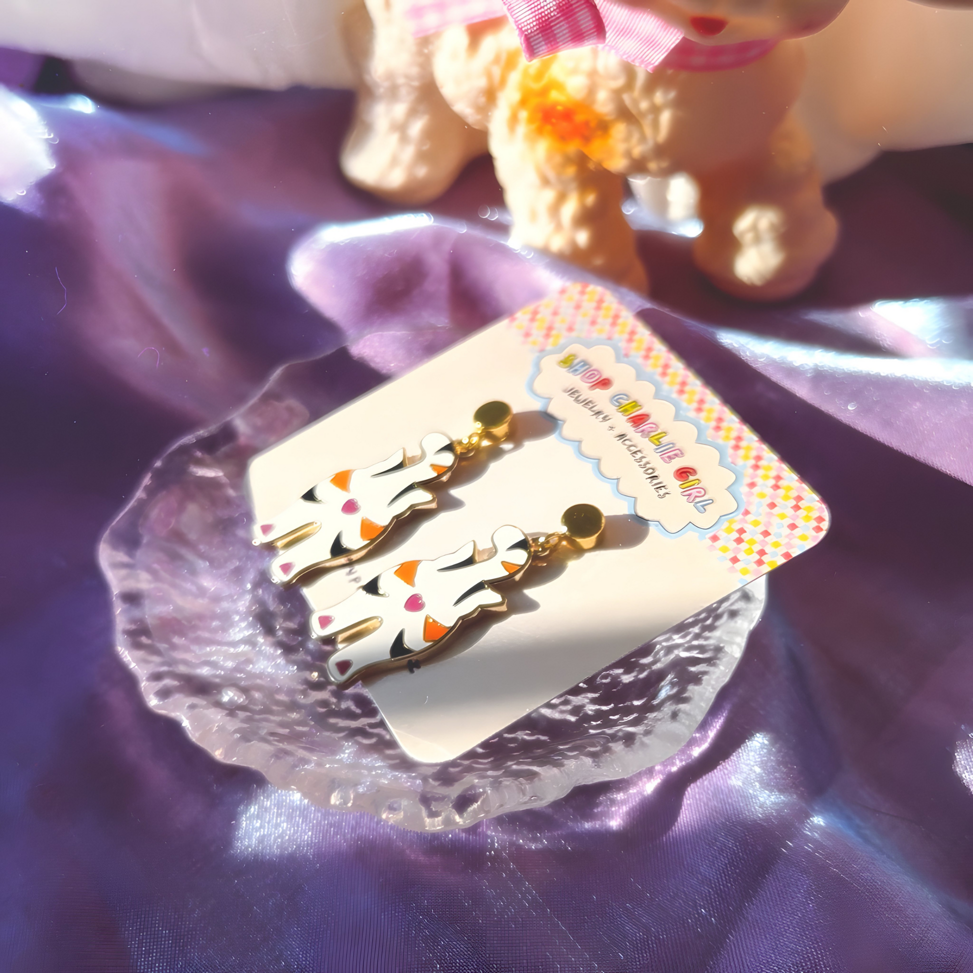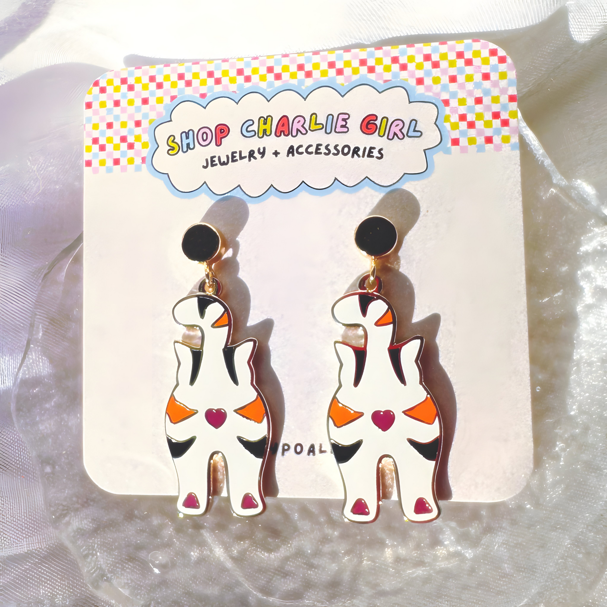 All metal and enamel jewelry (excluded beads and vintage) are drawn/designed by us here at Shop Charlie Girl and brought to life by our lovely manufacturers. All of our jewelry is made with hypoallergenic metals.