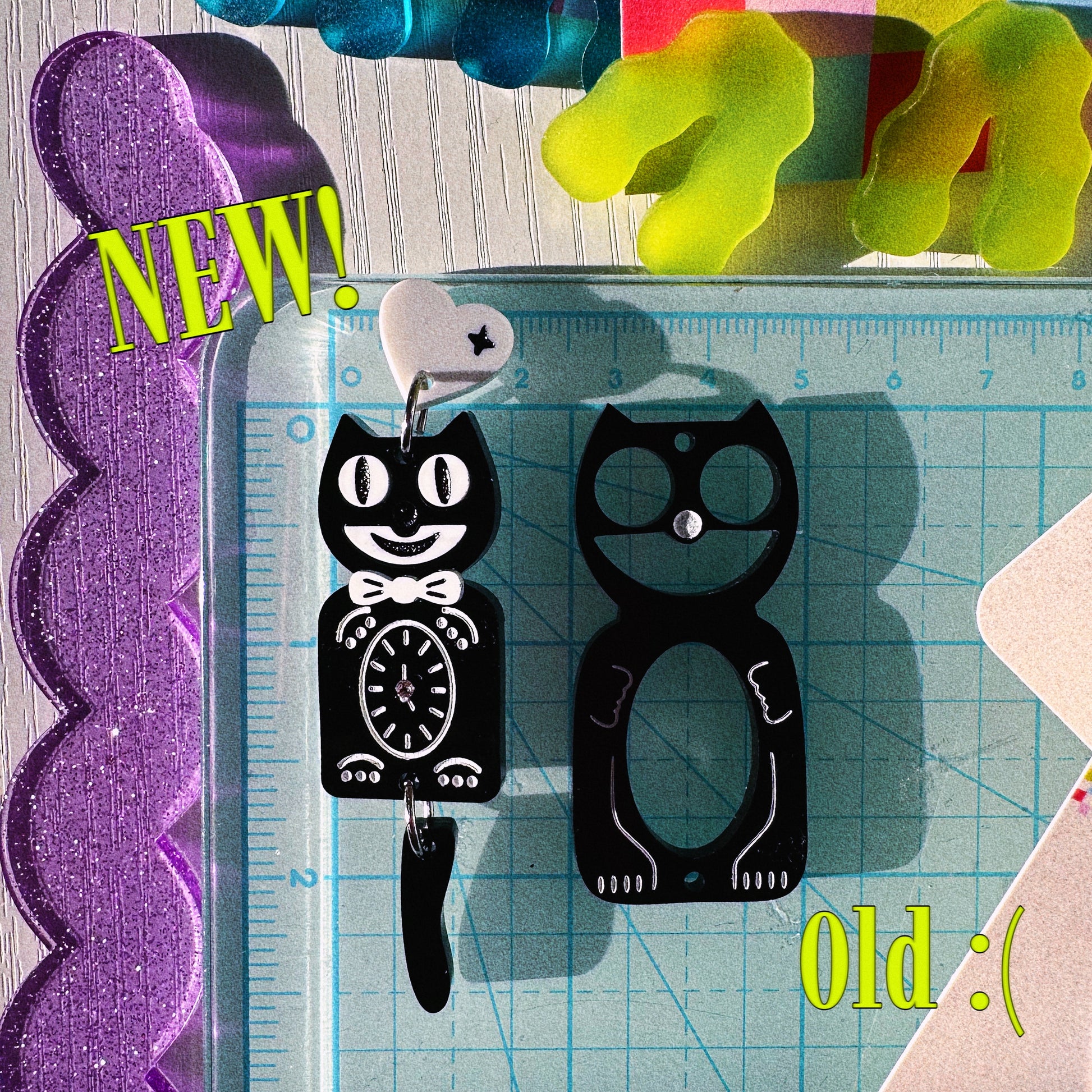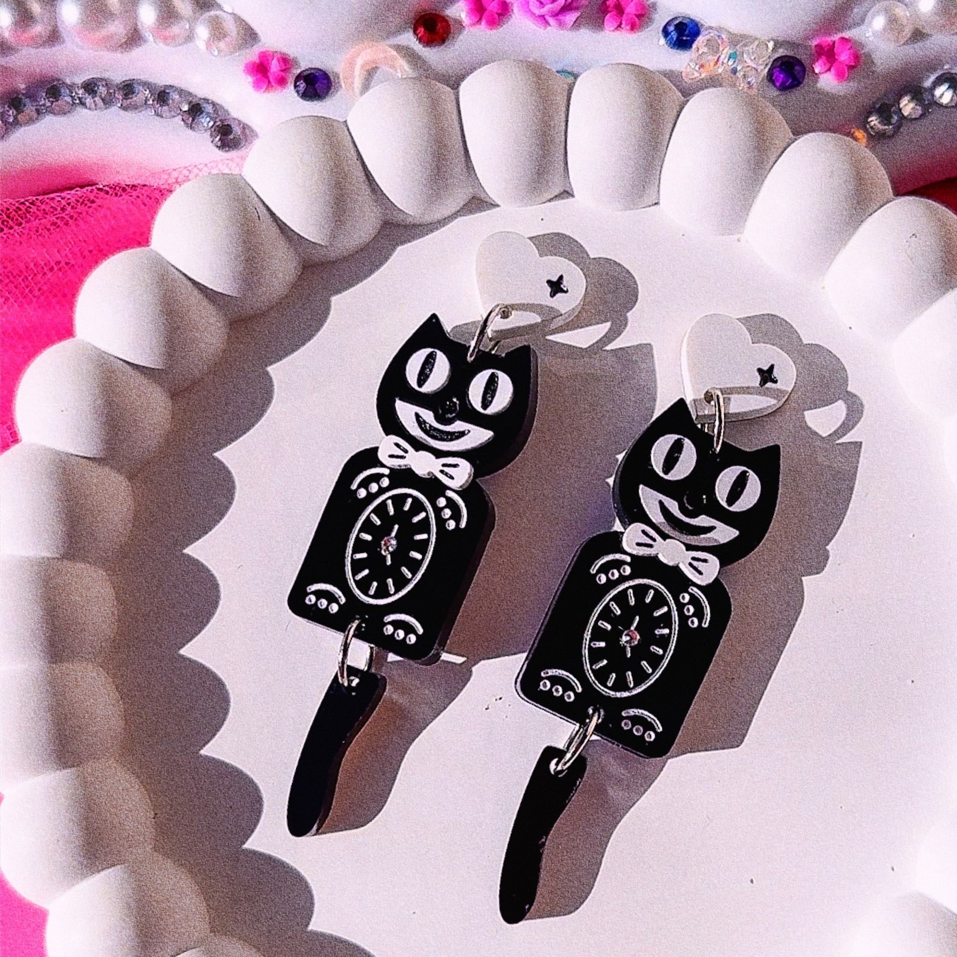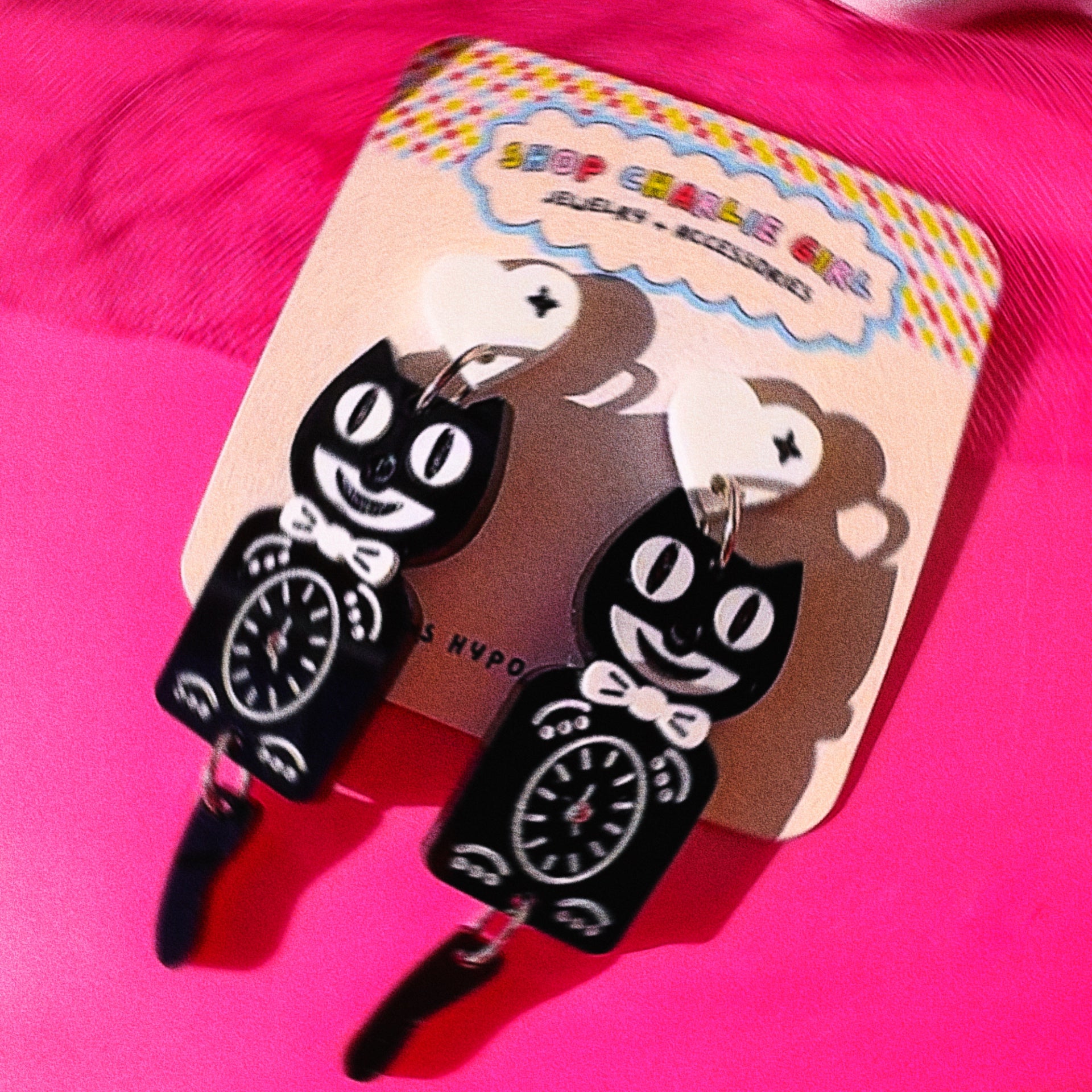 Kit Cat Clock Acrylic Earrings