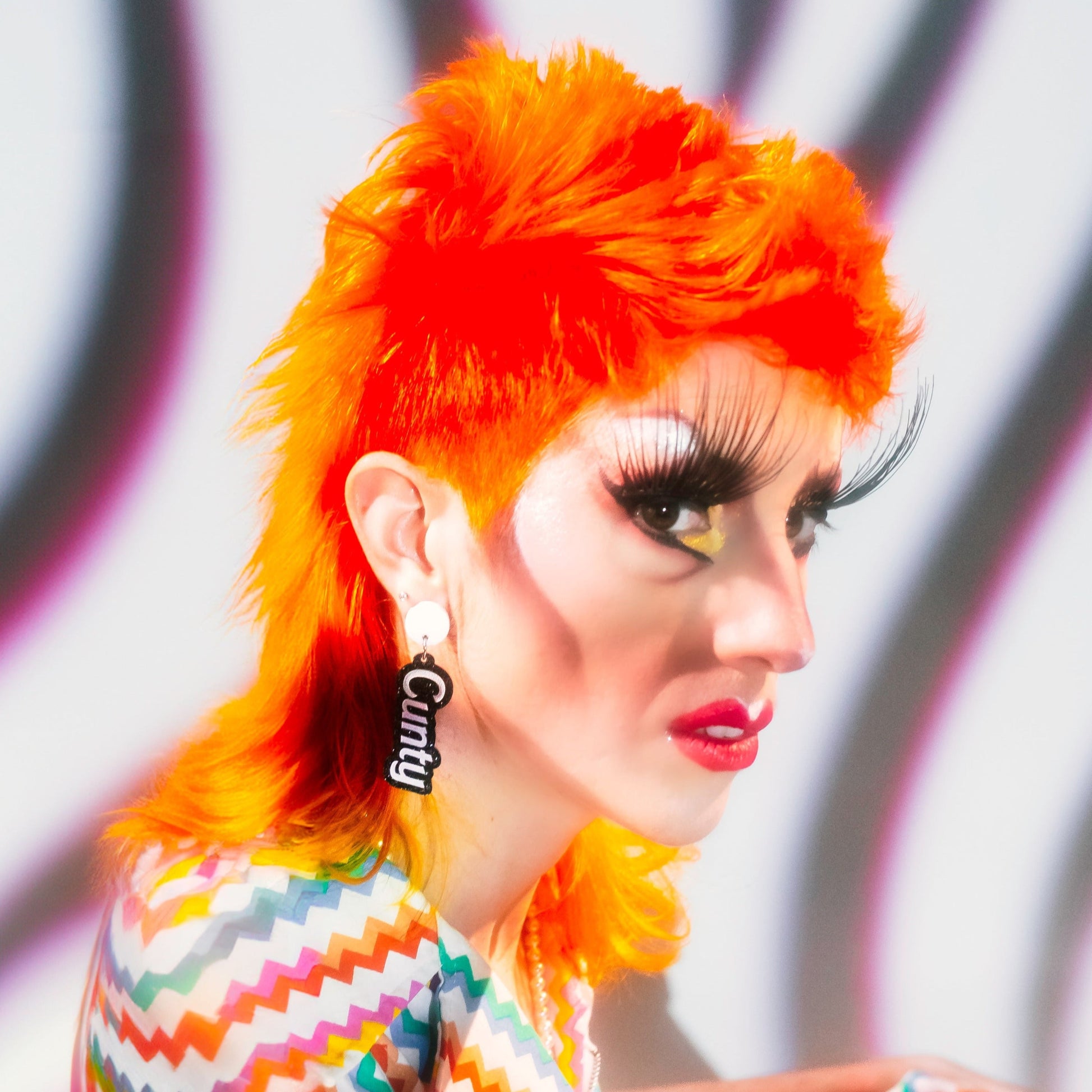 Handmade from laser cut acrylic and hand painted using oil based paint. This earring has a post made from surgical stainless steel that is hypoallergenic and nickel free.